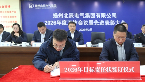 3月12日,揚州北辰電氣集團召開2026年度工作會議暨先進表彰大會。會議全面總結2025年工作,系統部署2026年攻堅任務,并號召全體干部職工統一思想、篤行實干,為開創公司高質量發展新局面而團結奮斗。公司黨支部書記曹陽主持大會,總經理陳健作工作報告,董事長丁斌作總結講話。